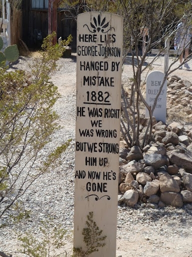 Juste à la sortie de la ville, il y a le cimetière de Tombstone : il porte le nom de Boot Hill car il est situé sur une petite colline et que plusieurs personnes sont enterrées avec leurs bottes.