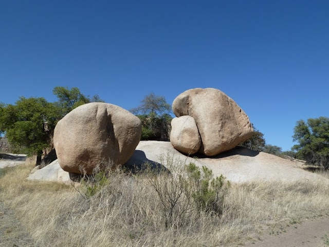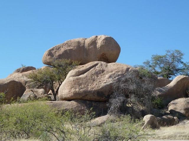 Dans l’après-midi, je me rends dans un endroit où Nadia avait repéré des photos de rochers assez impressionnants. A la hauteur de Benson, il faut se diriger vers Dragoon. Il y a peu de possibilités de sortir de la Hwy 10 mais lorsqu’on y arrive, waow…. quel décor. Mais il y a peu d’entrées possibles car ce sont de propriétés privées. Je me suis retrouvé avec des vaches sur un chemin impraticable (Texas Road !!! pour Nadia), j’ai tenté une entrée par un chemin qui conduisait je pense vers un camping. J’ai tourné un peu puis je me suis rendu compte que je ne savais plus comment retrouver mon chemin. Les rochers m’ont complètement perdu. Je suis monté sur une colline pour retrouver les bâtiments du bord de route.