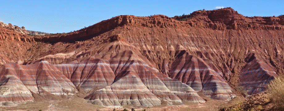 On s’arrête pour marcher dans le Red Knolls Amphitheater. Mais quelle déception. L’endroit est rempli de verre cassé, de canettes,…. Certains viennent ici pour s’entraîner au tir. On fait juste le tour de cette colline mais on a envie de repartir assez vite.