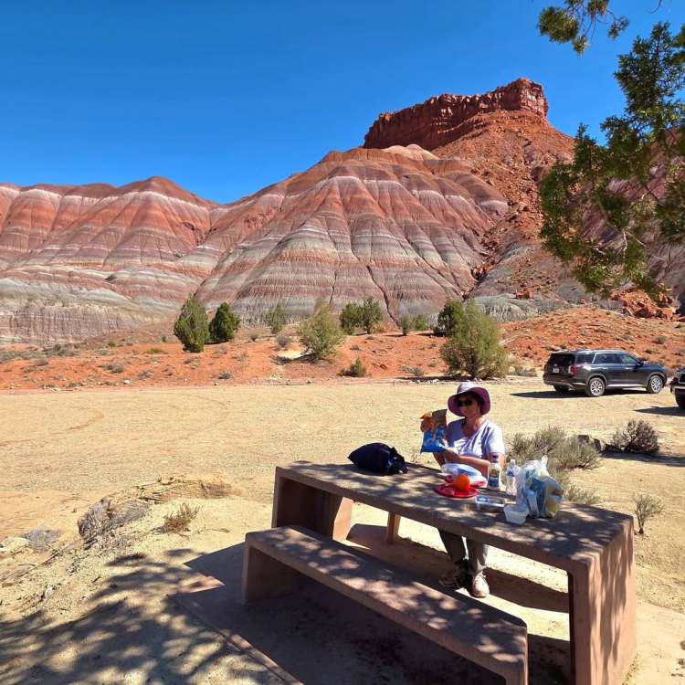 ut10 On quitte Panguitch pour rejoindre Page par la Highway 89. On marche dans le Red Hollow slot canyon le matin. On mange dans un endroit fabuleux, Paria Townsite. On rejoint le lac Powell où l’on croise un coyote et on mange au Big John’s Texas BBQ. Excellente journée